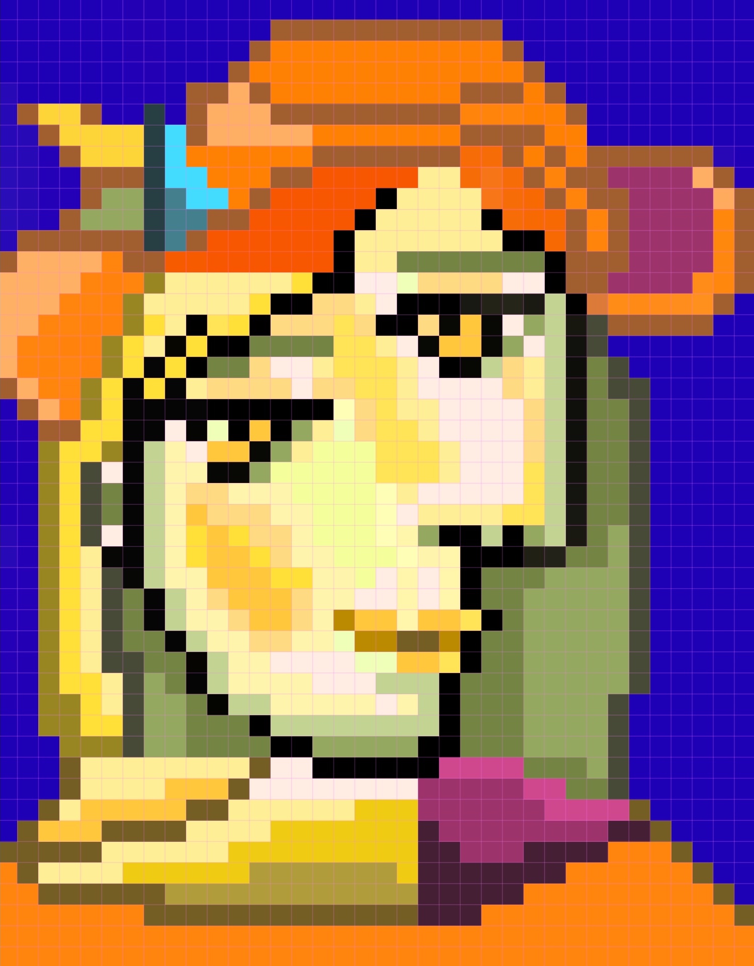我将传统艺术品中毕加索的名画进行在二次创作,并在其中加入代表NFT艺术《CryptoPunk》作品中像素化的表现风格,创作该作品。启示人们NFT艺术与传统艺术并不是完全对立的关系,也可以是相互促进、共同发展的关系。