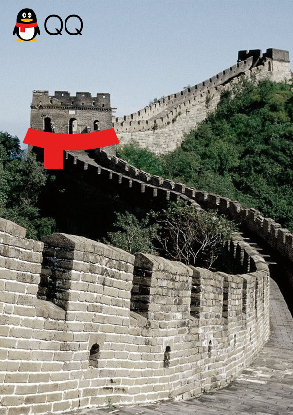 QQ与雄伟的万里长城连接在一起。